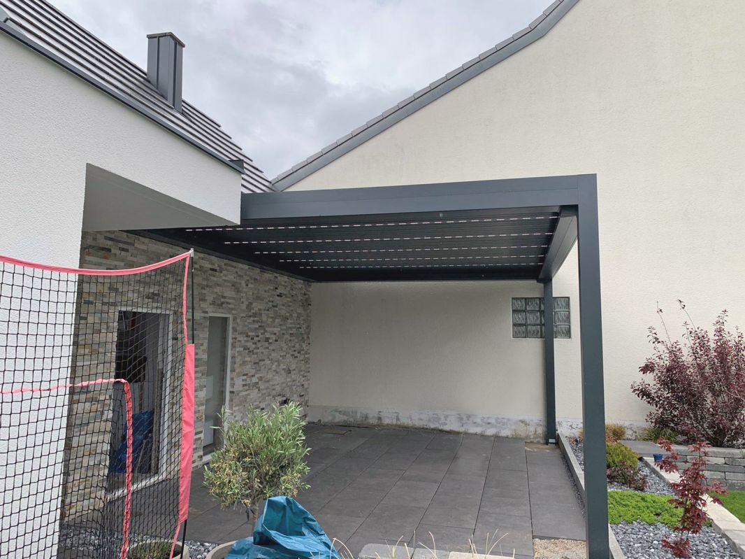 Die Lamellendächer von Süd Überdachung sind ein wahrer Blickfang und vereinen Design und Komfort perfekt. Der formschöne Aufbau ermöglicht eine vielfach verstellbare Kontrolle der Lamellen. So bieten unsere Lamellendächer individuellen Schutz vor Sonneneinstrahlung und Wettereinflüsse. So lässt sich zu jeder Jahreszeit komfortabel per Fernbedienung steuern, wie viel Licht einströmen darf. Zur optimalen Steuerung des Klimas ist auch der kontrollierte Sonnenschutz möglich, welcher die natürliche Luftzirkulation fördert und Sie ganzjährig vor der Sonne schützt.