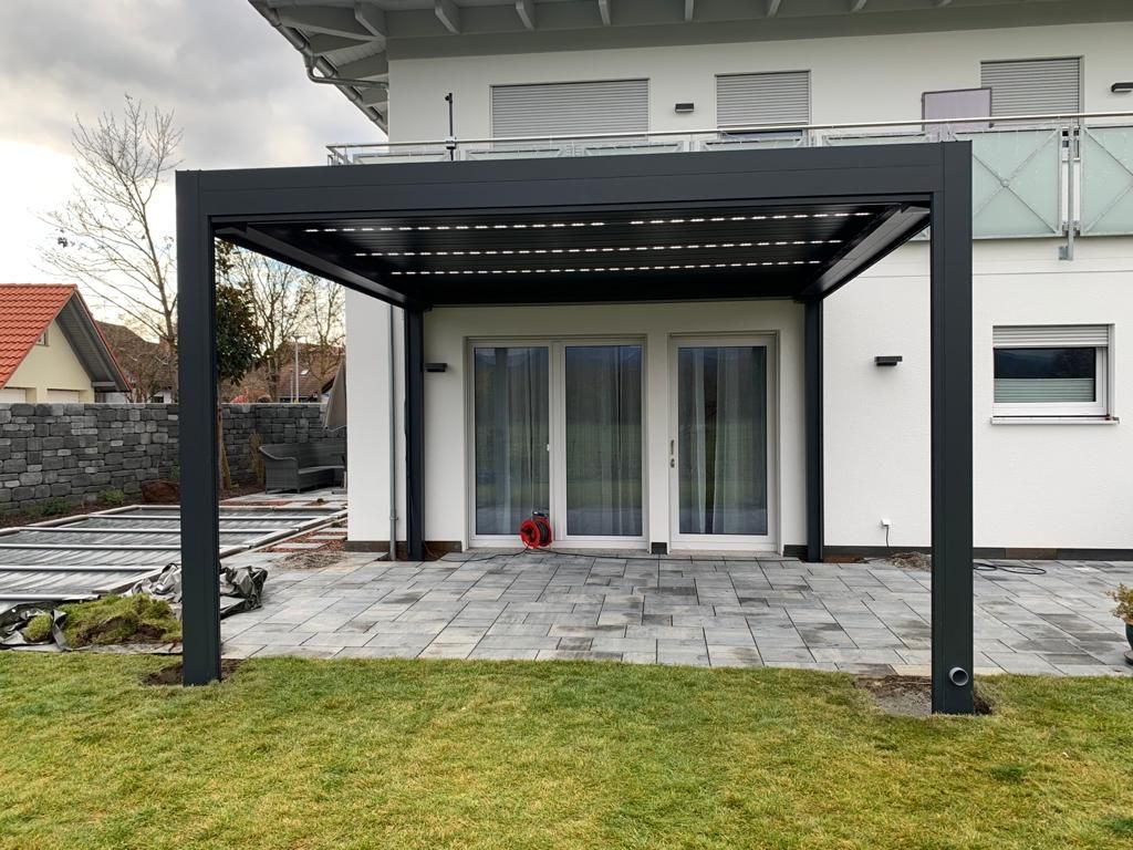 Des Weiteren können die Lamellendächer von Süd Überdachung weiteren Komfort-Features wie LED-Beleuchtung, Beheizung oder auch Senkrechtmarkisen und Raffstoren ausgestattet werden. Wir beraten Sie gerne.